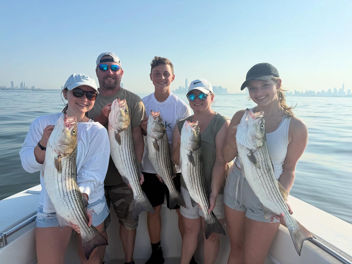 Here's the scoop: we're talking a full day out on the water, from sunup to sundown. Captain Ken's got room for up to four folks on his boat, so grab your buddies or bring the family. Don't sweat the gear – we've got you covered with top-notch rods, reels, and all the tackle you need. We'll kick things off with a quick lesson on the basics, then it's all hands on deck as we hunt for stripers. The beauty of inshore fishing is we can duck into calm bays if the weather gets frisky, so it's smooth sailing all the way. And hey, if you get hungry, just give us a heads up when you book and we can sort out some grub for the trip.
